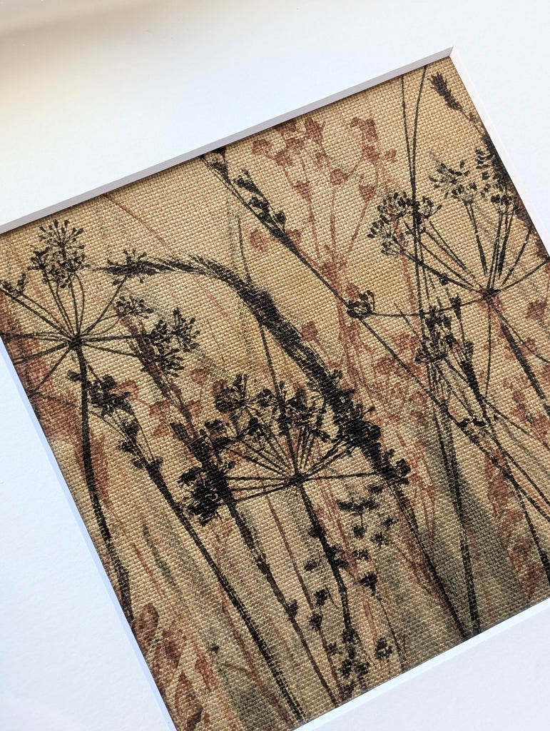 This original artwork has been created on Irish Linen using botanical inks and dyes made from locally foraged plant sources. Bring the outdoors into your home with this beautiful original textile artwork created on Irish Linen.