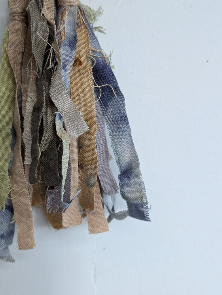 A zero-waste seasonal decoration. Each tassel is made from naturally dyed off-cut ribbons from larger Irish Linen artworks.